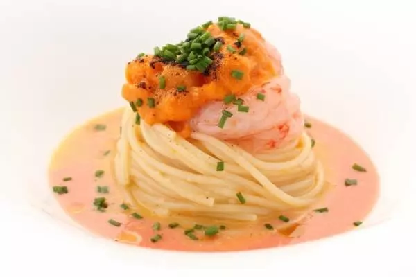 魚醤と柚子の果汁が隠し味の『うにとフルーツトマト(冷パスタ)』