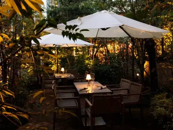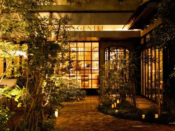 表参道から徒歩7分。青山通りから一本入った先に現れるのは、緑豊かなテラスが特徴的なレストラン【GENTLE Dining(ジェントル ダイニング)】。石畳のガーデンテラスから入ると、一階から地下まで広々とした空間が広がっています。表参道の喧騒からは離れ、静かな時間を過ごすことができます。