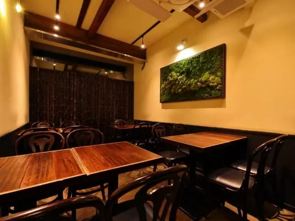 黒竹など天然素材をふんだんに使った内装は、熟練の庭師の手によるものなのだとか。一軒家を改装した店内には、ほっと心が落ち着く癒しの空間が広がります。カウンターには店オリジナルの薬酒がズラリ。ボックス席や隠れ家的な2階席もおすすめで、訪れるだけでパワーをもらえそうです。