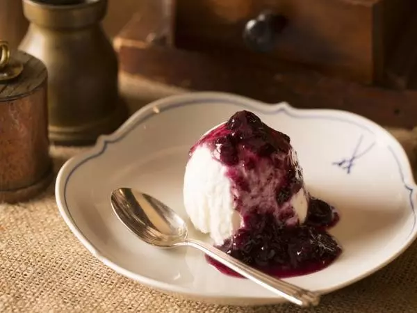 乃木坂駅から徒歩2分の立地にありながら、緑あふれる自然の中いるような気持ちで過ごせる喫茶店。『レアチーズケーキ』は、知り合いのフランス人から教えてもらったフランス・アンジュ地方の母の味「クレーム・ド・アンジュ」をベースに、試行錯誤して仕上げたケーキ。フレッシュブルーベリーを煮込んで作ったソースもぴったりです。