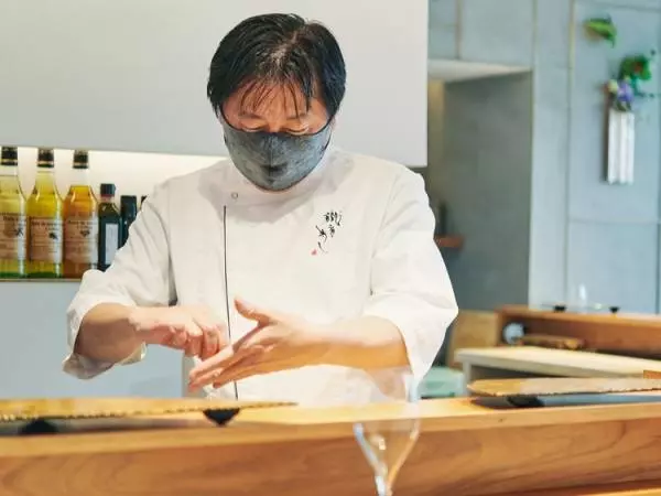 2020年7月、東京・銀座に誕生した【米菜°sakura 織音寿し(ベイサイドサクラ オリオンズシ)】は、各国のオイルと塩で食べる、世界で初めての「オイル寿し」の店。イタリア スローフード協会国際本部が主催した「テッラ・マードレ 2006」において世界の料理人1000に選出されるなど、国内はもとより世界にもその名を馳せるイタリアンの第一人者、奥田政行シェフがワインとペアリングさせるために考えたものだ。