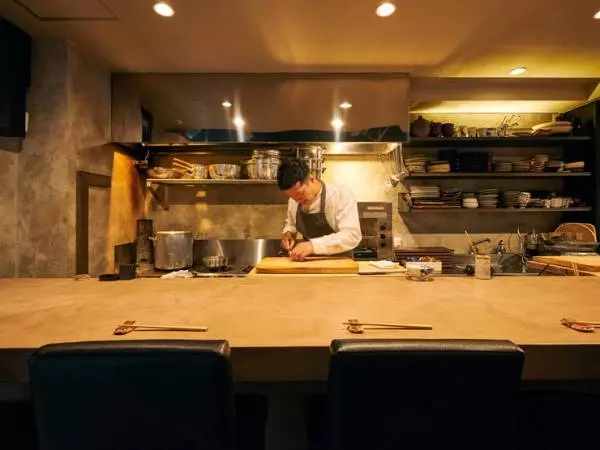 恵比寿駅から徒歩4分、魚料理を中心とした和食と日本酒やナチュラルワインなどがいただける和食店【魚見茶寮】。カウンター席のみの店内では、シチュエーションによって好みを伺いながら、ゲストにぴったりのメニューを提案。お酒は、シェフが酒蔵やワイナリーまで直接足を運び、生産者と対話し、こだわり抜いた銘柄だけを用意しています。