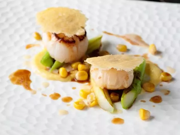 料理には青森倉石牛や陸奥湾のホタテなど、シェフの出身地である青森県産の食材を使用。メインのコースは、Wメイン、デザートなど全7品の『お気楽コース』9,950円(税込)と、鮮魚の鉄板焼き、青森倉石牛のサーロインステーキなど全6品の【豪華コース】12,870円(税込)の2種類から選べます。