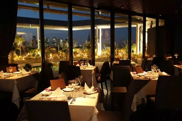 窓の外の夜景を眺めながら、二人だけの上質な時間を