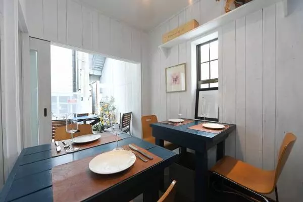 自由が丘駅からすぐ、しらかば通りに佇むビストロ。白とロイヤルブルーを基調としたウッディーな店内は、まるでパリを思わせる空間です。床、壁、テーブルなど内装やインテリアは材木を使用した温かみのあるカジュアルな雰囲気。カウンター席のほか、テーブル席やペットと一緒に過ごせる開放的なテラス席があり、さまざまなシーンで利用できます。