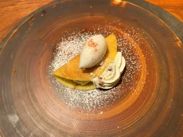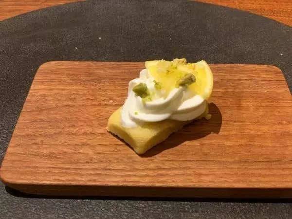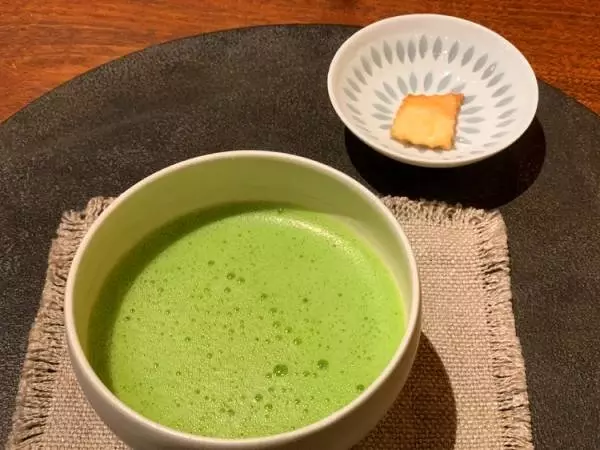 抹茶に添えられた菓子は、チェンチという名前の揚げ菓子で、イタリアの祭りで見つけたものだとか。チェンチとはフィレンツェの方言で「素朴な」とか「古き良きもの」と言った意味だそうで、食事の最後にちょっと添えられるメッセージにもなっているようでした。