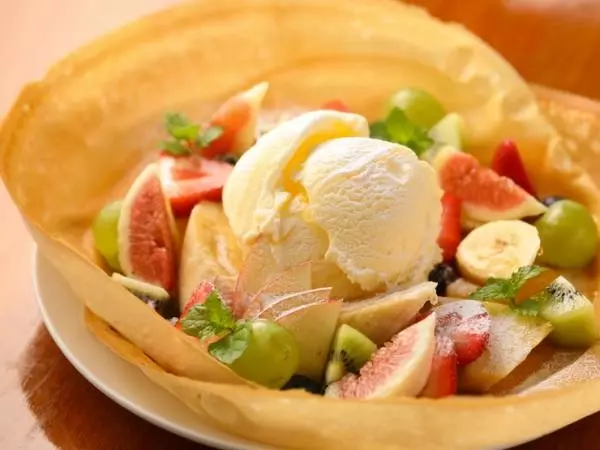 さらに同店では、季節のフルーツをたっぷりと使ったクレープやパンケーキ、フルーツサンドも大人気。中でもオープン以来、リピートが絶えないのが『彩りのフルーツクレープ』です。薄く焼き上げられたクレープを器に、たっぷりのフルーツが盛り付けられ、実に色鮮やか!ボリュームがありますが、あっさり食べられます。