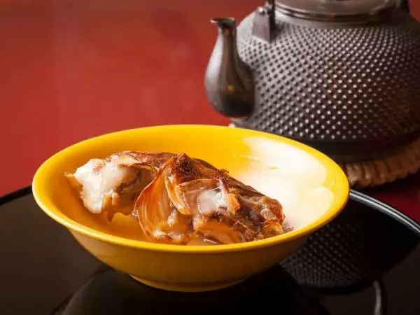 ぐじ(甘鯛)の旨みを存分に引き出した人気料理。吟味した最高のぐじに塩をして一晩寝かせ、その上に酒をふって皮は香ばしく身は柔らかく焼き上げます。締めには残った皮と骨にだしを注ぎ、汁として最後までぐじの美味しさを楽しめます。