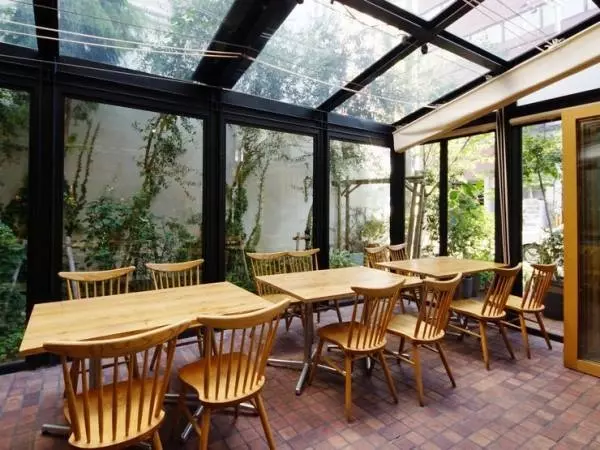 サンルーフがあるので、雨の日も楽しめるテラス席