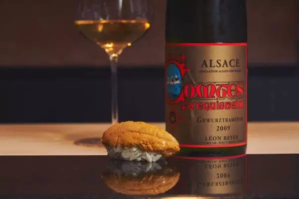 世界一の雲丹×レオン・ベイエキュヴェ・デ・コント・デギスハイム ゲヴュルツトラミネール 2009