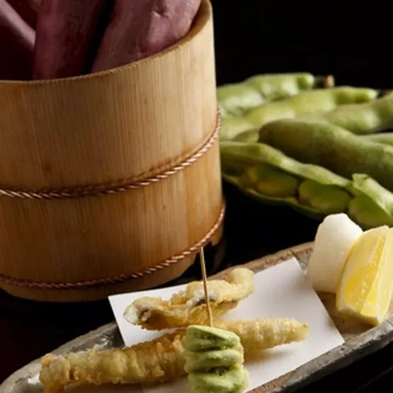 京野菜や旬の魚介など、京都ならではの食材を、熟練職人が一瞬の妙技で揚げる絶品の天ぷら。お昼のコースにも素材にこだわる想いが伝わってくる多彩なメニューがそろっています。四季の風景を感じられるお庭を眺めながらいただくお料理は、大切な人のつながりをいっそう深めてくれるはずです。