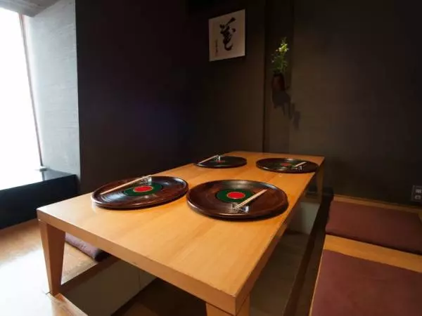 掘りごたつの個室。季節の生け花など静かな和の空間が落ち着く