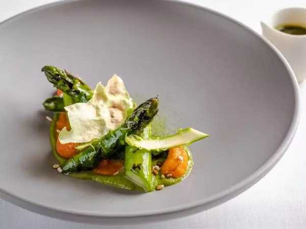 アスパラガスが持つ様々な魅力を堪能できる「プロヴァンス産アスパラガス米糠雲丹」
