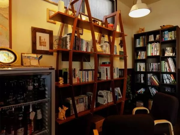 「ゆったりくつろぐように……」越田さんの思いは店内の本棚にも。