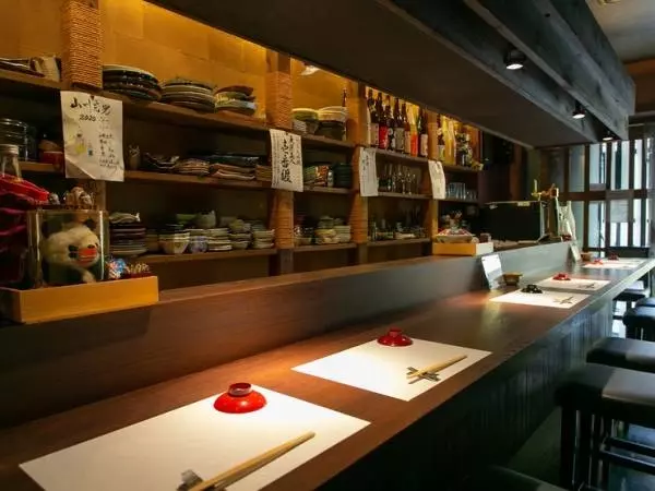 仕事帰りにふらりと立ち寄り、ひとり飲みしたくなる、落ち着いた雰囲気のカウンター席