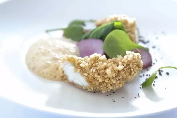 ゲストがこぞって絶賛するのが『スペシャリテ海老せんべいを纏ったフグのフリット』。砕いた海老せんべいを新鮮なフグにまぶし、香ばしく揚げたシェフの自信作です。あられの歯ごたえとフグの風味が調和した絶品です。フグ調理師免許を持つシェフだからこそ生み出せた唯一無二のフレンチです。