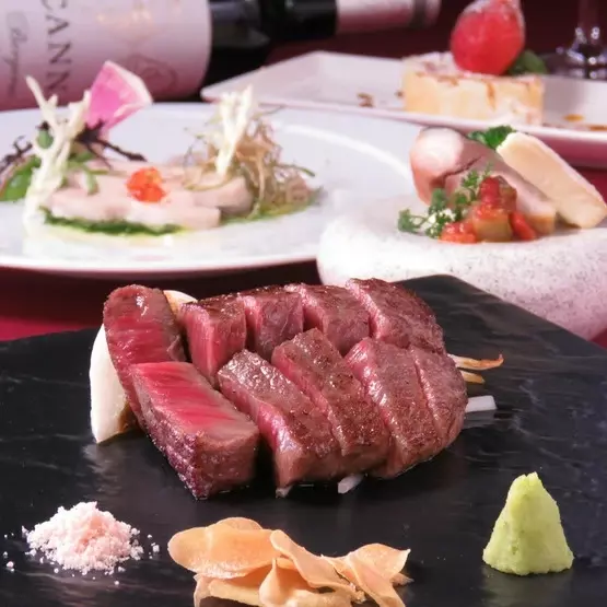 最上級A5ランクの九州産黒毛和牛や長崎産の伊勢海老など、旬の食材を鉄板焼きで堪能できます。