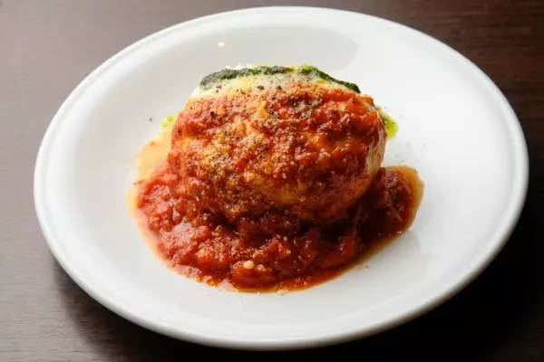 『自家製手ごねハンバーグジュワっと肉汁爆弾』は、粗挽きミンチの手ごねハンバーグ。ナイフを入れた瞬間、ジューシーな肉汁があふれ出て食欲を刺激します。まさに“爆弾”と呼ぶにふさわしい豪快なひと品で、爽やかなトマトソースとの相性も抜群。リピーター続出の人気メニューのひとつです。