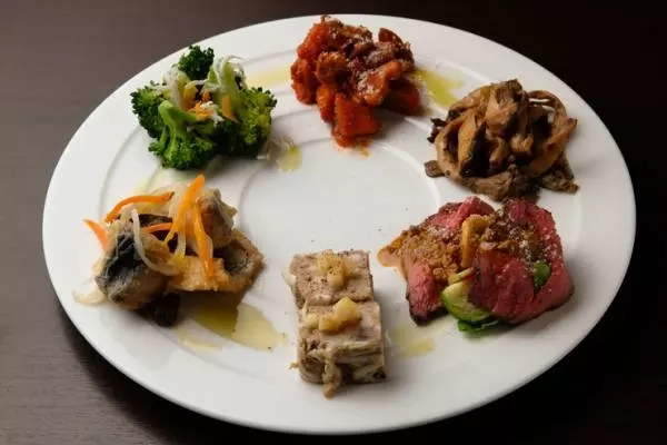 旬食材を使った前菜がカラフルに集う『前菜6種盛り合わせ』