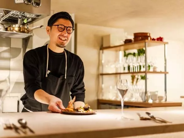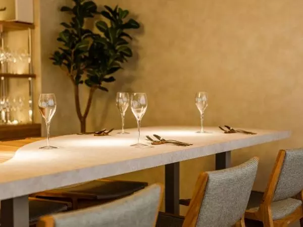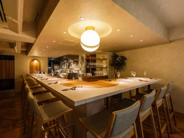 ゆったりとしたL字のカウンターは、厨房に立つ坂田さんの手技を目の当たりにできるだけでなく、一部分は4人掛けのテーブルとして利用できるので家族や親しい友人たちとのディナーにぴったりです。