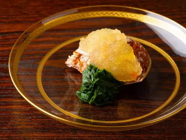 『香箱蟹のすっぽんジュレがけ』は、12月のコースの一品。コースの内容は毎月変わる