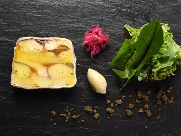 こちらは、サバとじゃがいもという定番の組み合わせをテリーヌに。にんにくが効いたカニ味噌の濃厚ディップが美味。赤キャベツのピクルスがアクセントになっています。