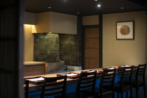 上質な大人の雰囲気が漂うお店は、カウンター6席とテーブル4席のみでゆったりと寛ぎながらお食事をお愉しみいただけます。広くとったカウンターと、境目のない厨房、カウンター内にしつらえた焼き場、温かみがある土壁など、随所にこだわりが潜んでいます。