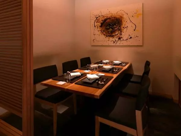 【炭火割烹 白坂】には、6名まで使える個室が完備されているため、会食や接待などのおもてなしの席にも最適です。お客様の利用目的に合わせたサービスを提供してくれるので、距離を縮めたい相手とカジュアルに過ごすこともできます。店内の温かいムードに会話も弾みそうです。