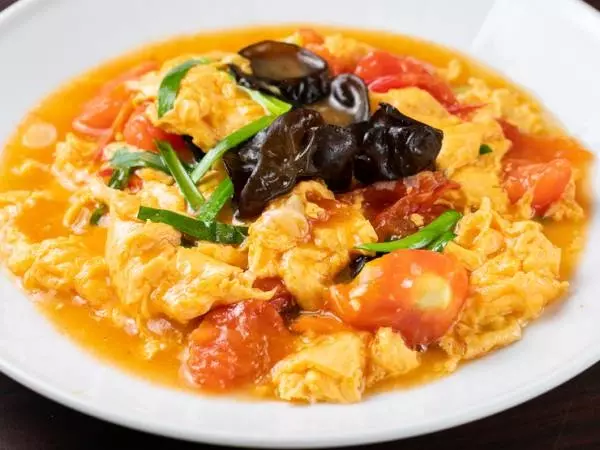 名前の通り、トマトと卵を炒めたメニュー。ふわふわの卵の食感とトマトの旨みと酸味がたまらない一品。にらときくらげを添えた盛り付けも華やか。女性にも人気のひと品です。