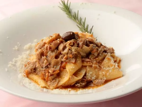 トスカーナで提供されるパスタは、猪・兎・鹿・鴨といったジビエのラグーソースでいただく幅広い帯状のパスタ「パッパルデッレ」が人気です。【ILBUTTERO】の『自家製パッパルデッレ』は、手打ちのパスタに、猪・鴨・兎などを使って香味野菜と赤ワインでじっくり煮込んだ季節のスペシャルラグーソースを絡めた一品。濃厚で力強い味わいが絶品です。