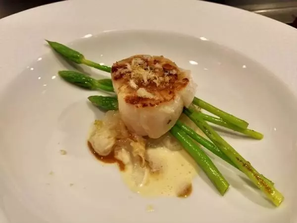 『ホタテ、アスパラソバージュ、新タマネギのソテー』