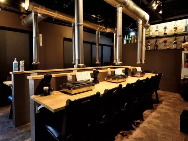 カジュアルな隠れ家的空間の店内、ひとり焼肉が楽しめる広々としたカウンター