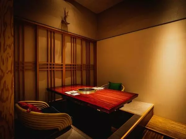 店内には2~6名が利用できる個室もあり、掘りごたつでゆったりとした時間を過ごせます。天井が高く開放感のある設えは、大切な相手との会食に利用するのもオススメです。伝統の韓国格子を現代的にアレンジした個室で、満足感のある上質な時間を過ごせそうです。