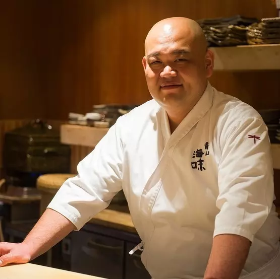 1980年生まれ、鹿児島県出身。大阪の鮨店に修業に入り、鮨の基礎を学ぶ。その後、和食店やホテルなどで経験を積み、2019年8月【すし処海味】に入店。創作のない王道の江戸前鮨を極めたいと一新。
