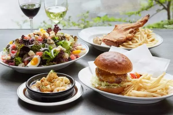 牛肉100%で作った食べ応えのあるパテが自慢の『SAWAMURA 特製ハンバーガー』は人気メニューの一つ。肉汁をしっかり吸い込むバンズはパテとの相性抜群です。『ニース風サラダ』『沢村フライドチキン』『海老とレンコンのアヒージョ』といったシェアしやすいメニューも合わせて楽しめます。