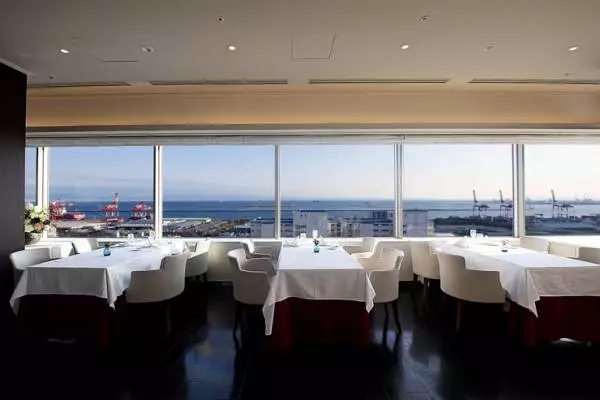 六甲アイランドにあるホテルプラザ神戸の最上階にあるレストラン【スマイリーネプチューン】。窓側に配した客席から神戸のハーバービューが広がり、時間帯によりそれぞれの眺望を楽しめる特別感たっぷりな空間は、特別なひと時を過ごしたいロマンチックなデートにぴったり。