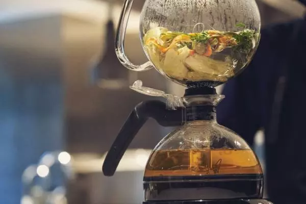 サイフォンで3〜4回煮出して端野菜のコンソメをとる