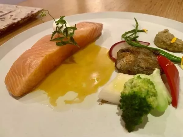 レアに仕上げた『サーモンのミキュイ』はナイフを入れてそのなめらかさに驚く