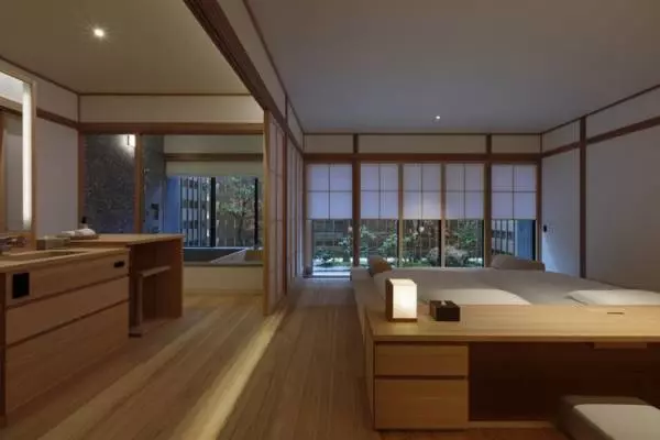 檜の心地よい香りに包まれる客室Photo : Tomohiro Sakashita