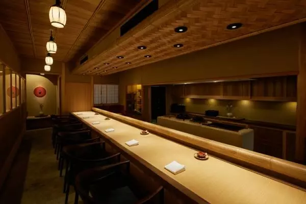「畳に膳をおいて食事する。そんな昔からの日本の風情や文化を少しでも味わっていただきたい」と、カウンターを畳敷きに。板場の中央には“おくどさん”が鎮座。京言葉でかまどを“くど”と言い、親しみを込めて“おくどさん”と呼ばれています