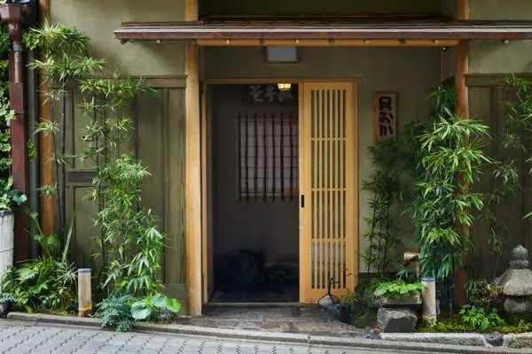 平安神宮の大鳥居から続く神宮道の坂を少し上り、歴史深い青蓮院門跡の真横にその店【月おか】はあります。近くには京焼の一つである粟田焼の発祥の地があり、世界的にも有名な古美術商があるなど、文化的な香りが色濃く残るこの地。京町屋を改装したその美しい佇まいがしっくりと街中に溶け込んでいます。玄関を開けると、そこはちょっとした路地のような作りに。「駿牛菴」と書かれ、まるで茶室にでも来たよう。手水からは水が流れ、この先にあるのはどんな店なんだろうとワクワクしてしまいます。