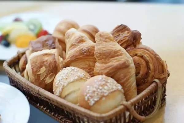 シェフが目の前で料理を仕上げるアクションコーナーでは、できたてのオムレツをいただけます。ふわっふわトロトロのオムレツは格別。毎朝ホテル内の工房で長時間発酵させて焼き上げられたメゾンカイザーのパンも、香り高く絶品です。このパンはお土産用に店頭にて購入もできます。