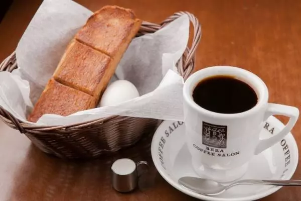 全ドリンクに黒糖パンの厚切バタートーストとゆで卵が付く『モーニングサービス』