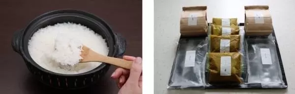お米を浄水で3回ほど優しく洗い、さらに浄水で20~30分ほど浸水。炊くときに魚沼産のお水を使うのですが、おいしいお米には水も大切なポイントです。『厳選米と蓮のカレー(4食分)』7,560円