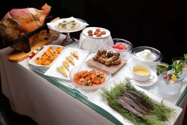 『本日の前菜盛り合わせワゴン』は、ワゴンに並ぶさまざまな食材を自分で組み合わせるスタイル