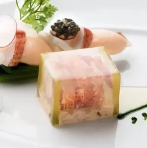 オマール海老をジュレで纏い、キャビアを添えた『オマール海老のクリスタルジュレ』