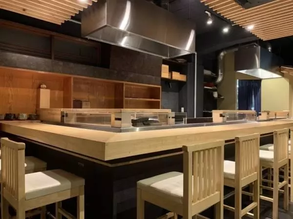 JR東西線・北新地駅に近い雑居ビルの4階にある【北新地again】。玉砂利が敷かれた入り口のドアを開けると、カウンター越しに店主と料理人が出迎えてくれます。ひとたび足を踏み入れれば、外の賑わいとは一線を画した和やかな空間が広がります。ジュー、ジュワと串の揚がる音や芳ばしい香りで満たされています。ミシュランガイドにも掲載された名店ですが、ソムリエでもある店主や料理人との会話が弾む、15席のみの和やかな空間。リラックスできる雰囲気と、趣向を凝らした料理の数々に舌の肥えたゲストもきっと満足してくれるはずです。