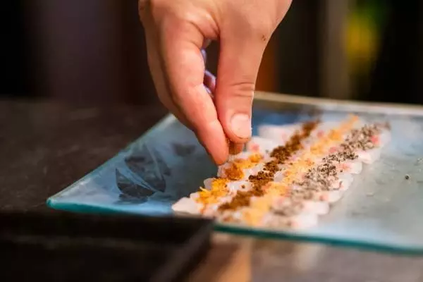 口の中にどう入れるかで味が変わる『鮮魚の旨味カルパッチョ』
