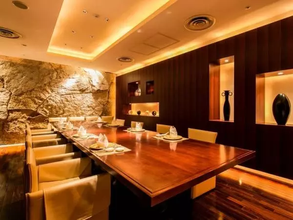 店内には個室も充実。美しい内装の個室は、ビジネスでの利用や家族でのお祝いの席など、用途に応じて使い分けられるのも魅力です。贅を尽くした「翡翠」やモノトーンで統一した「琥珀」などの豪華な内装の個室をはじめ、可動間仕切りで2名から最大60名まで対応可能な個室まで完備されています。