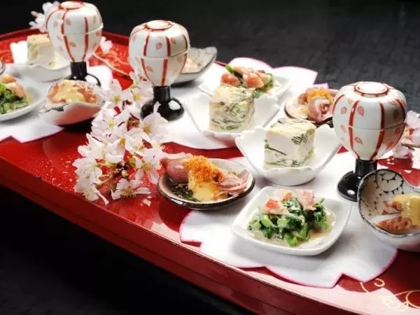 見た目にも華やか、季節感いっぱいの『旬の食材を使ったオードブル盛り合わせ』(コース料理より)